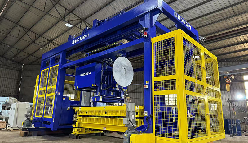 国内首台采用上、下梁整体铸件三点式结构,采用高强实芯立柱贯穿联接结构强度高,可以稳定高压荷载,液压系统采用伺服驱动和运行轨迹实现反馈和双向精确控制,并结合稳定的吸盘式码垛机械手生产路沿石等较重湿法混凝土制品轻松堆码,精准的控制结合可变量压力技术…