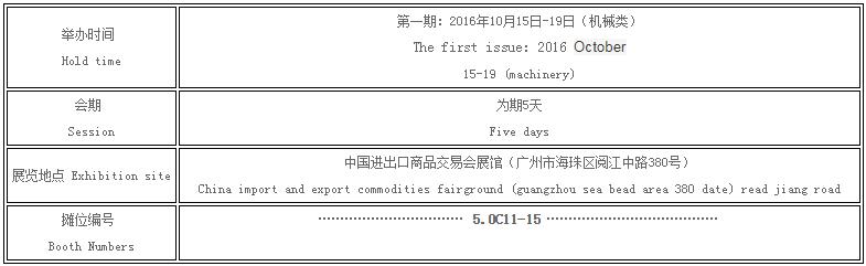 参展时间:2016年10月15日~10月19日