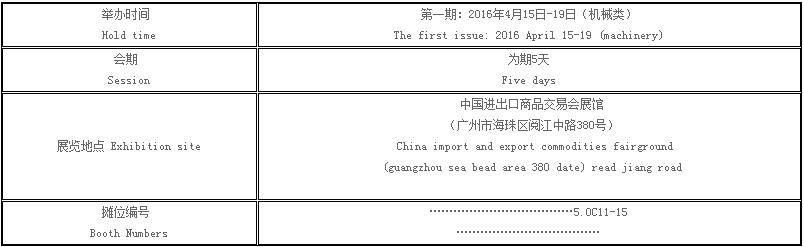 参展时间:2016年4月15日4月19日