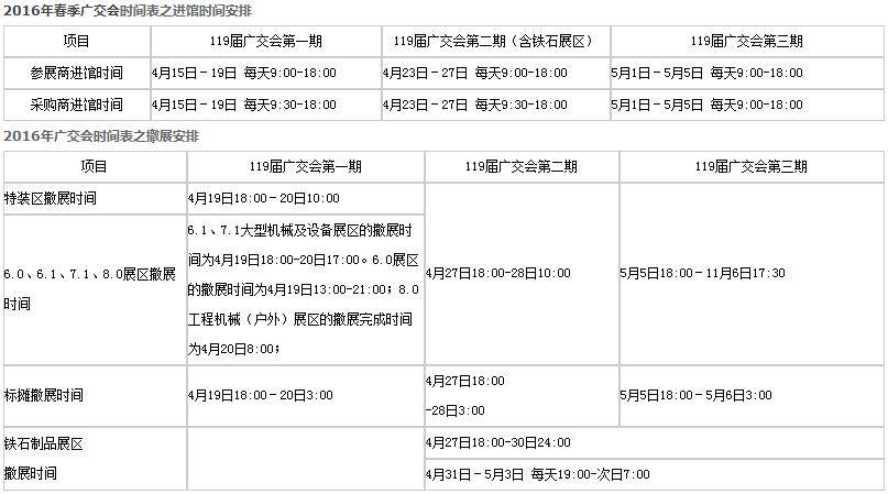 2016春季第119届广交会时间表之展出安排