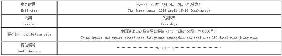 参展时间:2016年4月15日4月19日