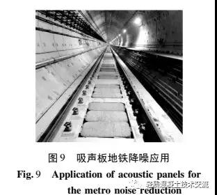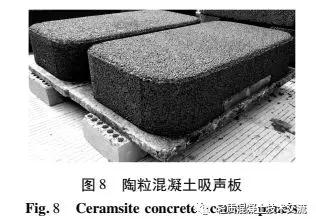根据测试结果可以得到吸声试件的平均吸声系数都在 0. 55 以上, 具有较好的吸声性能, 而 100 mm高度的试件在 630 Hz 的吸声系数达到了 0. 92。由图 7 中吸声系数曲线可以看出, 3 种不同高度的吸声曲线变化趋势相近, 但是随着试件高度的增加, 峰值吸声系数有向低频移动的趋势。在试验研究的基础上, 广西科技大学与柳州汉西鸣建材发展有限公司合作, 研制出铺设于地铁道床的陶粒混凝土吸声板, 如图 8 所示。并通过上海建筑科学研究院对吸声板的降噪性能进行了检测,得到吸声板的降噪系数( NRC) 为 0. 8, 吸声降噪性能达到了国家Ⅰ级标准, 具有理想的吸声降噪效果。陶粒混凝土吸声板在南宁地铁 2 号线的应用如图 9所示。